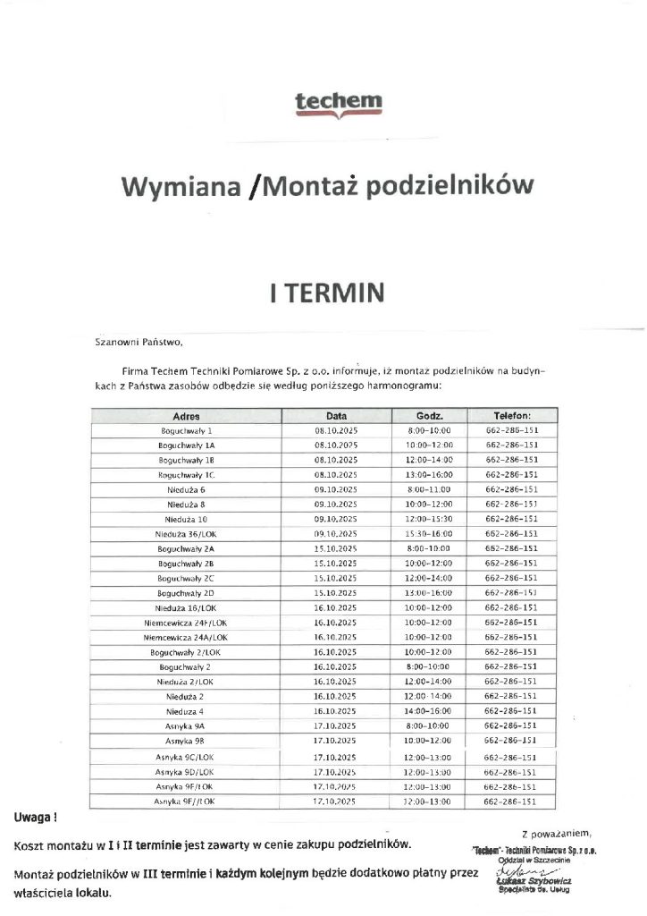 Wymiana/montaż podzielników na Os. Dembowskiego